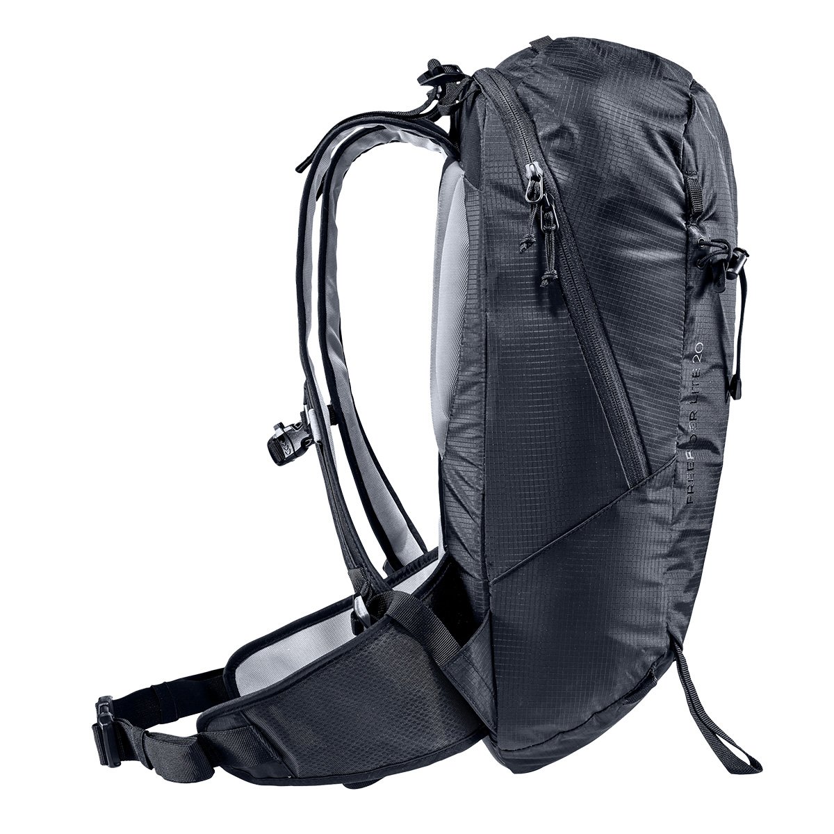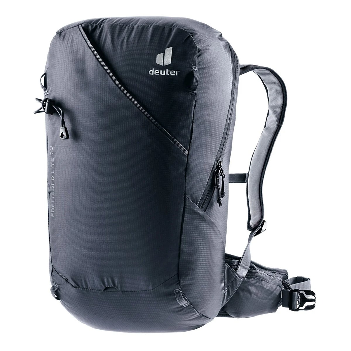 Deuter Freerider 20 If you spend your winters walking and skiing in the mountains, then the ultra-light backpack is exactly what you are looking for. Featuring our Lite carrying system and made from a new fabric that is durable, breathable and snow-resistant , Freerider Lite is extremely comfortable to carry. Sweaty, wet equipment and clothing can be stored in the front pocket and contents in the main compartment can stay dry. We also equipped it with our new modular attachment setup. You can strap your skis, snowboards or snowshoes to the outside of the pack using two special stackable straps attached to the gear rings on the pack, diagonally, so you can carry skis, snowboards and snowshoes in an upright position.