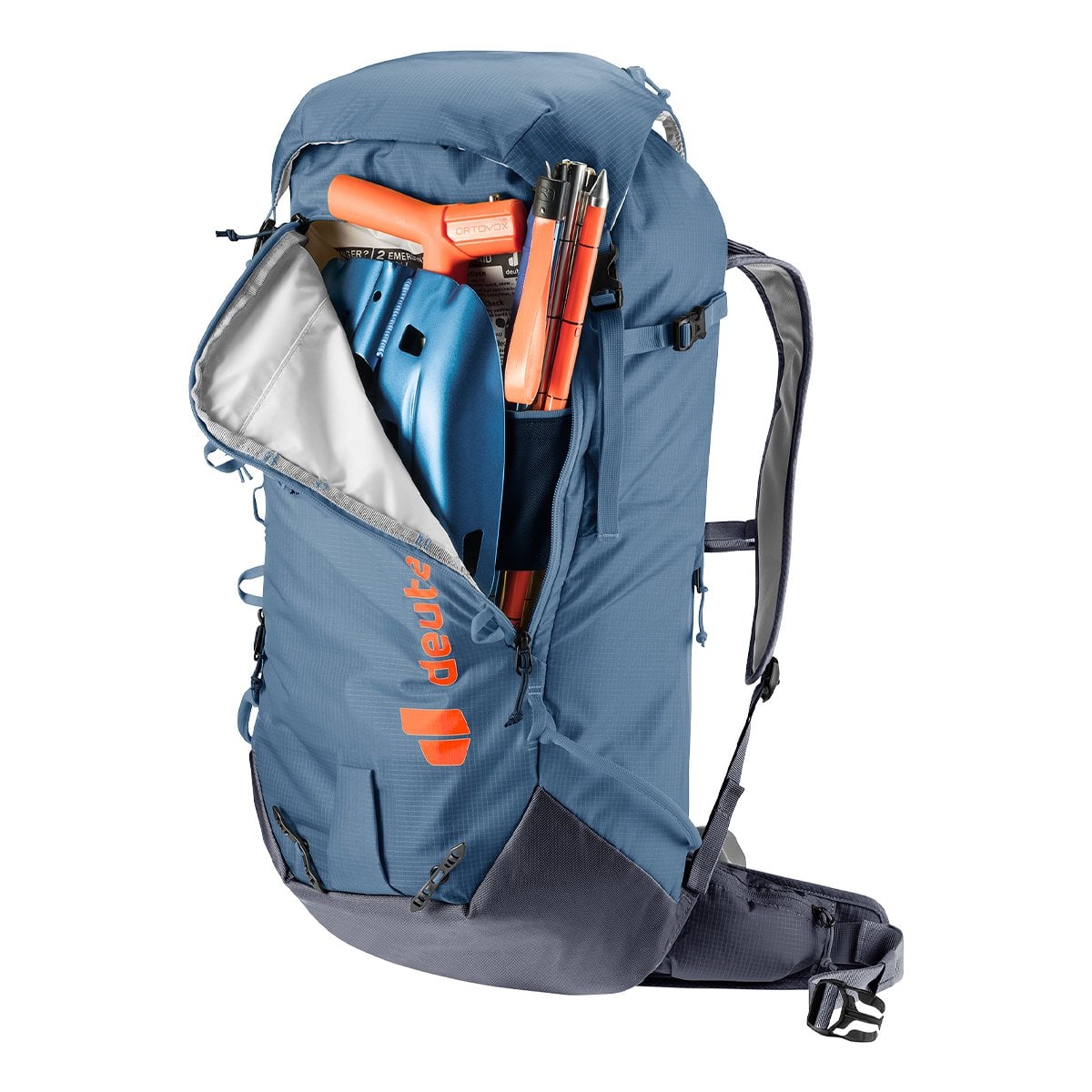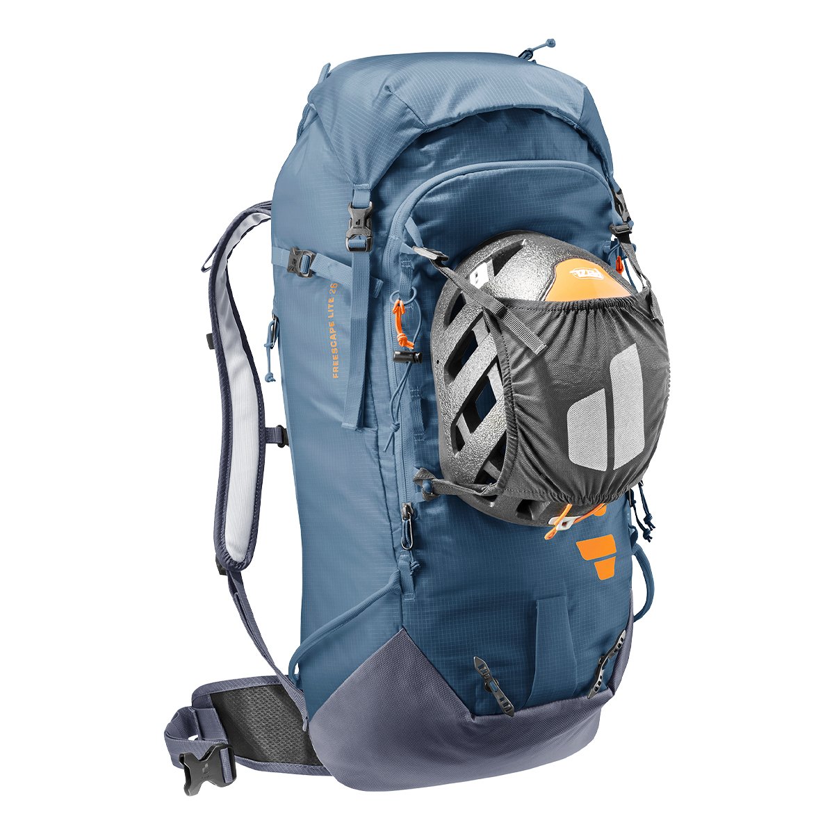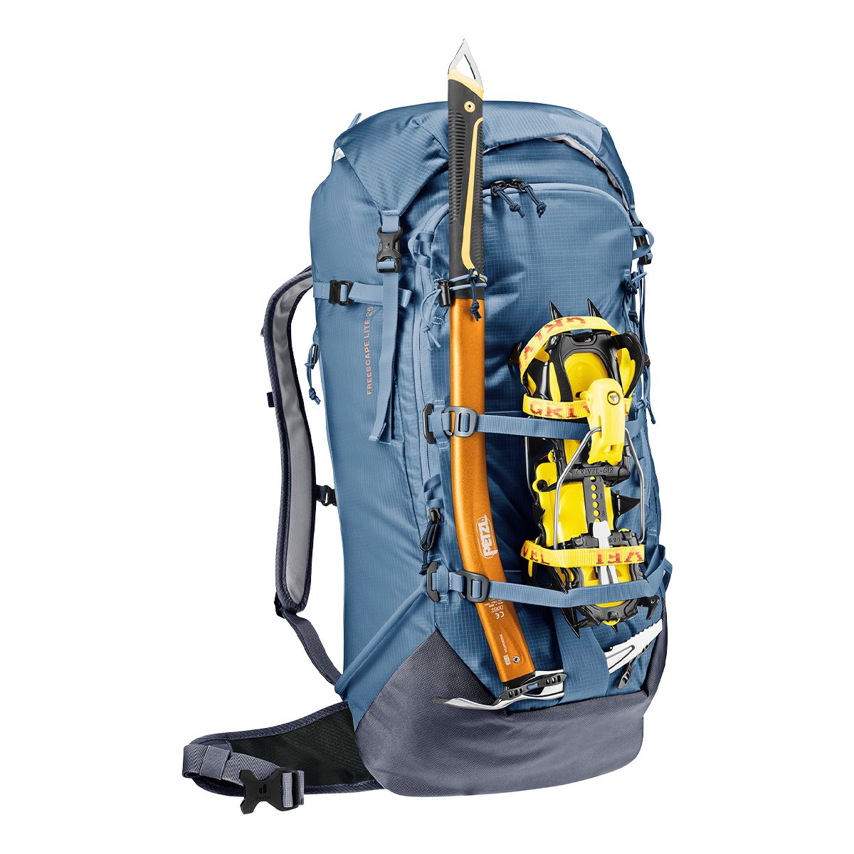 DEUTER FREESCAPE LITE 26 Product Code: 3300122 Product Description; The Freescape Lite ski mountaineering backpack offers high carrying comfort, extremely light material, safe and easy use. The additional side zipper opening thus provides quick access to the equipment inside, while the skis, snowboard or crampons remain secure thanks to the variable attachment straps on the outside. The separate safety compartment for the probe and shovel is immediately accessible in case of emergency. Product features; Volume 26 LT Weight 1180 gr Lightweight Comfortable hip fins Adjustable chest belt with signal whistle Load adjustment straps Reinforced safety compartment for paddle blade and handle Integrated and removable helmet net Side smartphone pocket Compatible with 3.0 liter drinking system/bag Glasses holder on shoulder strap Emergency assistance label Two ice ax holders A- Frame Ski Fixation Fixing straps for cross-country skis Compression straps Zippered glasses pocket in the main compartment - fleece-lined Snow-repellent cover fabric in the back system Simple System PFC-free Material; 100D PA Ripstop Extremely lightweight polyamide fabric with distinctive honeycomb structure. This 100 denier fabric is used in our seriously reduced weight backpacks, in the 210 denier version on cycling backpacks. Reinforcement threads woven into the honeycomb structure increase the tear resistance and ensure the stability of the fine textile. PU coating inside. 630D PA*D means denier. This defines the thread weight. 600D corresponds to 600 grams per 9000 metres. * PES means polyester. PES fibers are very resistant to tearing and abrasion and barely absorb moisture. * PA stands for polyamide. PA fibers are extremely durable and abrasion resistant. They are also characterized by high elasticity and low weight.