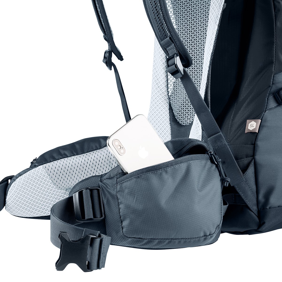 This innovative mesh back system also provides maximum back ventilation. The movable, ergonomically padded VariFlex ECL lumbar support provides energy-saving carrying. Clearly separated compartments allow for easy and efficient storage of items in the lid compartment, side lower pockets, separate lower compartment, and spacious main compartment. Deuter Futura 38 SL Features