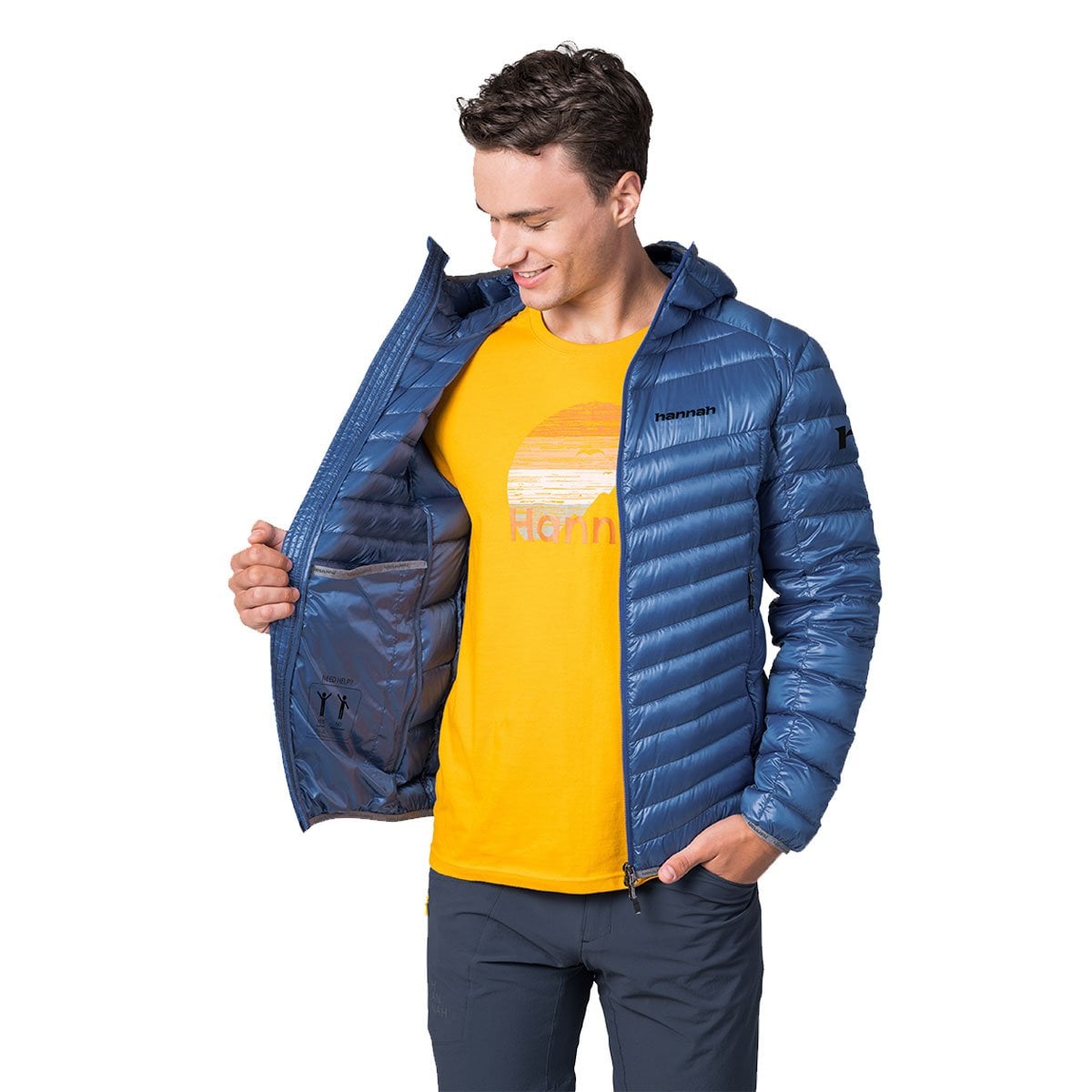 Explore, push, exceed the limits with the Hannah Arden Jacket . You can do it all with Hannah Arden 's lightweight, insulated down jacket. At first glance, it impresses with its material structure and interesting appearance of its stitching. It's made of high-density Airlite DMF fabric with a waterproof coating and filled with Bluesign-certified duck down. Therefore, the jacket has a wide range of uses, from mountain walks, trekking and other active sports to travel.