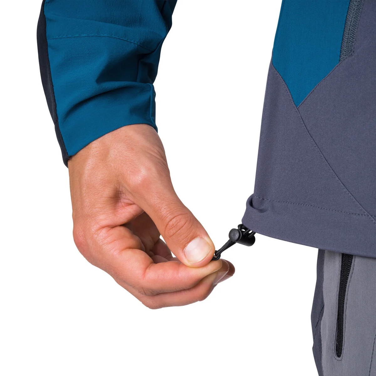 The Hannah Carsten II men's softshell jacket is a more refined successor to the proven Hannah Carsten model. You can use it for any outdoor sport, trekking or via ferrata climbing. It's made of water-repellent, windproof yet breathable Softshell Extra Lite with an 8000 membrane that is combined with highly comfortable AFT Tech Stretch on the sides and back of the jacket and the Teflon Eco Lite outer treatment. The Alpine Fit maps the contours of your body and the jacket does not restrict movement. The pre-shaped sleeves and adjustable hood, bottom hem and sleeves ends also enhance comfort when wearing this jacket. The main zipper is reverse.