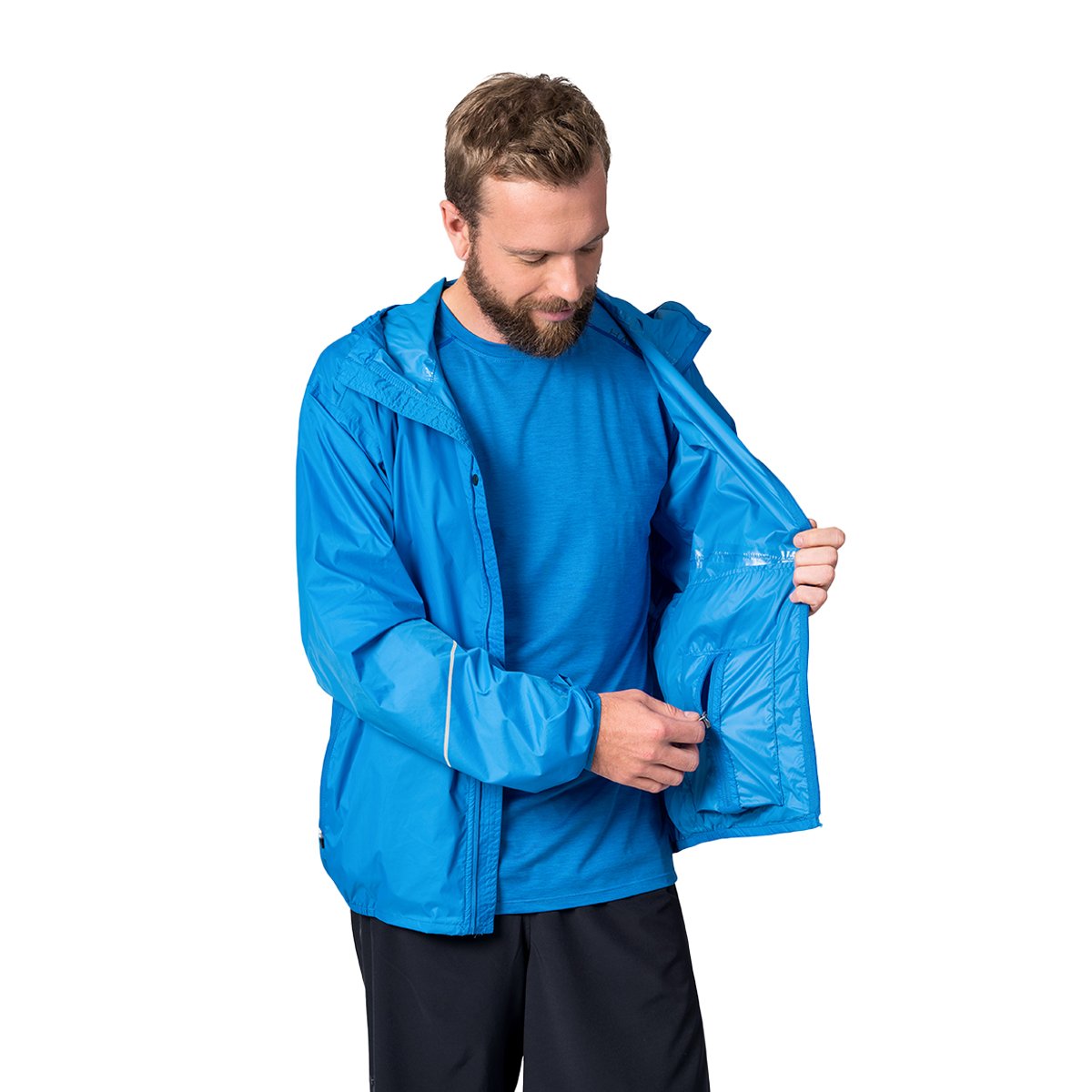 The Hannah Miles Men's Rain Jacket is a lightweight, easy-to-carry jacket for those who enjoy active sports such as cycling or running.