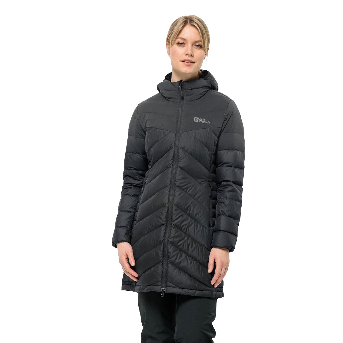 The Jack Wolfskin Tundra long, warm and extremely comfortable Tundra Down Coat is as stylish as it is functional on the coldest days. Made from Texashield Pro Reused/Recycled Lightweight surface fabric, with added protection on the shoulders, filled with 700-fill Gray Duck Down RDS, the Tundra is for days that feel truly arctic.