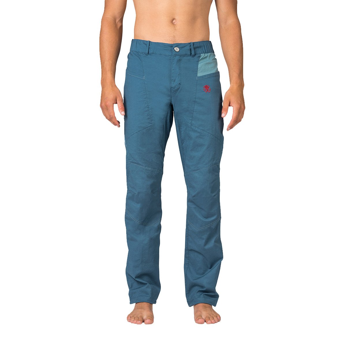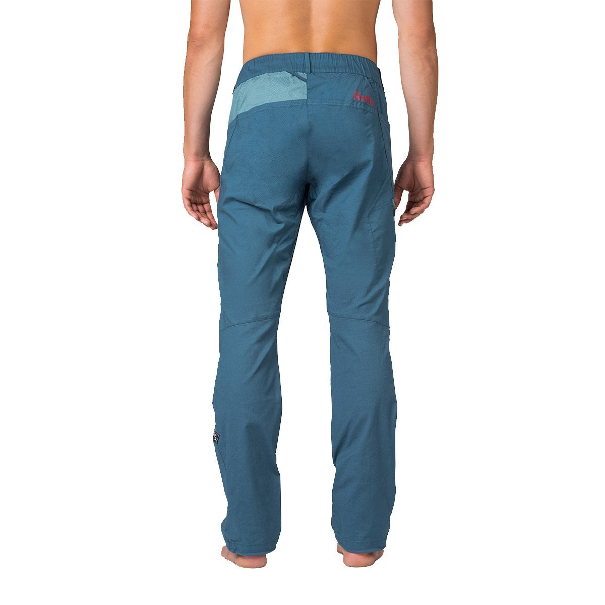 The Rafiki Crag men's climbing pants are inspired by Megos shorts and are among Rafiki's best products. They are functional pants you can wear all day long. The combination of cotton and elastane is strong yet flexible, making the pants ideal for climbing, with double-sided pre-shaped knees increasing durability. Thanks to the detailed fit, you have absolute freedom of movement. Large front pockets carry all your essentials, a brush pocket is a must-have, and you can easily store your phone in the zippered pocket, accessible even while sitting in a harness. The pants have a fly, elastic waistband, and belt loops. Rafiki Crag Features