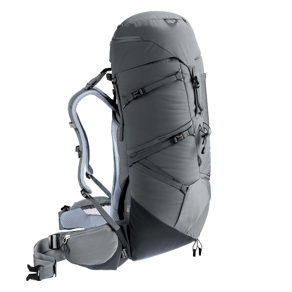 Deuter Aircontact Core konforlu sırt çantası, taahhüt veya ihtiyaç duyduğunuz donanıma bağlı olarak çeşitli öğeleri takmak için konumlandırılabilen modüler donanım kayışları sayesinde çok yönlüdür. Üstün taşıma konforu, Air Spacer fileli ve geniş bir havalandırma kanalına sahip deuter Aircontact sırt sistemine, ayrıca ergonomik omuz askılarına ve ayarlanabilir bir göğüs kemerine bağlıdır. Kalçaları saran hareketli kalça yüzgeçleri ve deuter'in ergonomik trapez şeklindeki bel yastığı ile birlikte Y şeklindeki çerçeve, yükü dağıtmak ve dengelemek için birlikte çalışır.
