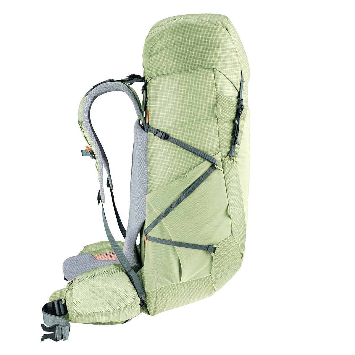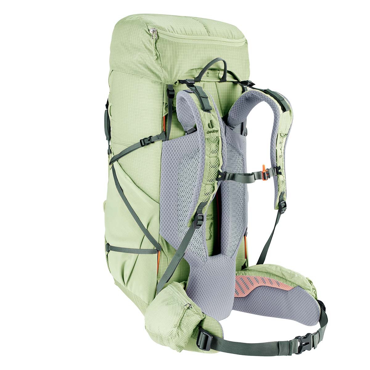 Aircontact sırt sisteminin Air Spacer ağının azaltılmış temas yüzeyi, sırtta daha fazla havalandırma yaratırken ağırlığı azaltır. Basit Clip & Loop sırt uzunluğu ayarı ve ergonomik olarak şekillendirilmiş kalça yüzgeçleri, uzun mesafelerde üstün taşıma konforuyla özel bir uyum yaratır.