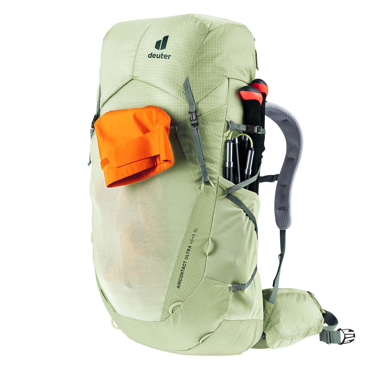 Deuter Aircontact Ultra, hafif sırt çantası, olağanüstü bir konfor-ağırlık oranından faydalanır (çıkarılabilir bir kapak ve her gramın önemli olduğu sıkıştırma kayışları ile). Deuter Aircontact sırt sistemi ağırlığı eşit şekilde aşağıda tutar, ancak her şeyden önce sırt boyunca havalandırma yaratır. Sırtın uzunluğu Clip & Loop sistemi ile ayarlanır ve ergonomik kalça yüzgeçleri yükü etkili bir şekilde dağıtırken sıkı, rahat bir uyum yaratır. Performans elyaflarından üretilen dayanıklı ripstop gövde kumaşı, uzun mesafeli yürüyüşün zorluklarına dayanacak şekilde üretilmiştir.