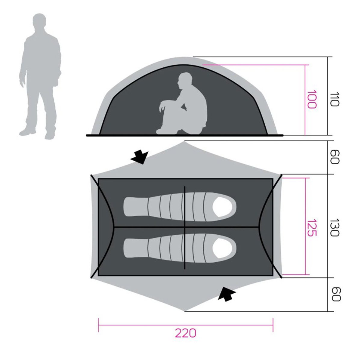 Kubbe şeklinde bir yapıya sahip, alpin trekking ve yürüyüş için kompakt bir çadır. DuraluminYUM direkleri sayesinde çadır çok hafif ve dayanıklıdır. İç çadır çoğunlukla bir örgü kumaştan yapılır ve havalandırma 2 hava deliği tarafından sağlanır. Silikon kaplı uçuş sayfası, dikiş bantlamaya izin verir ve diğer faydaların yanı sıra UV radyasyonuna karşı dayanıklılığı arttırır.