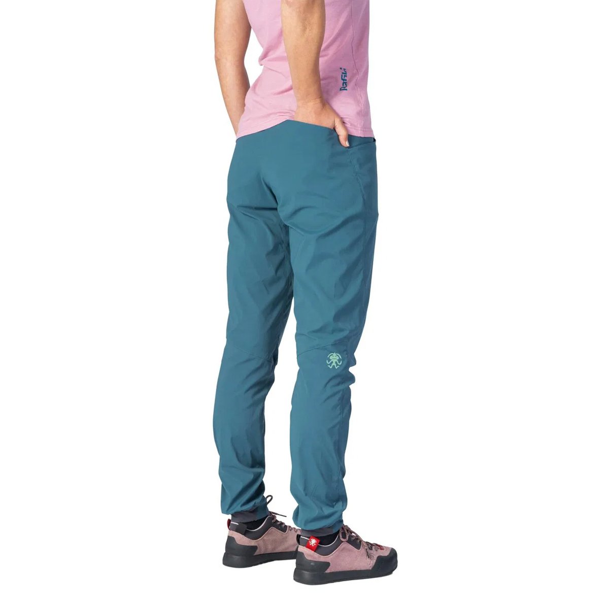 Rafiki Femio, Hafif, nefes alabilen ve hızlı kuruyan malzemeden yapılmış kadın pantolonlar, keskin kayaya veya kayalık üzerine tırmanmak için idealdir.